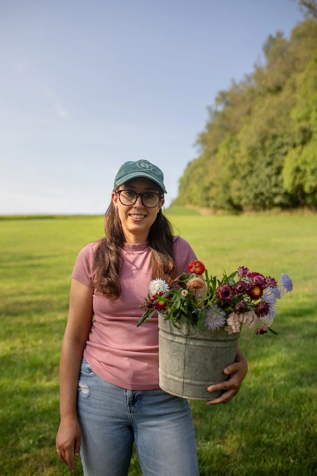 Rows of corn, strawberries and potatoes to pick for dinner eventually gave way to dahlias, zinnias and tulips to give to friends. One row became two, three, four, and now more than ten rows are blooming with hundreds of flowers.
